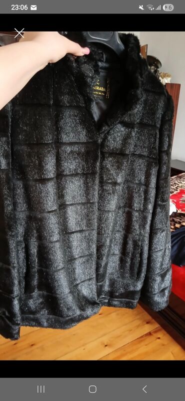 Qadın üçün qara rəngli kürk manto - Brend: GALA (etiketdə görünür) -