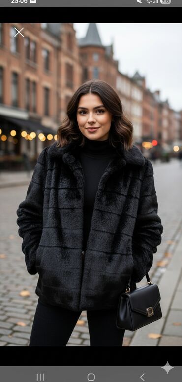 Qadınlar üçün qara kürk Orginal Dəri - Material: yumşaq, sıx tüklü qara kürk; iç tərəfdə açıq boz rəngli tüklü astar - Model: klassik düz kəsim, qış mövsümü üçün qalın və isti - Bağlanma: gizli dü...