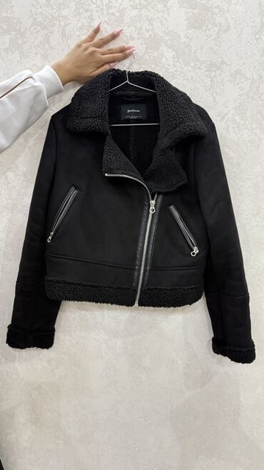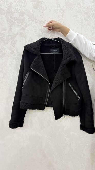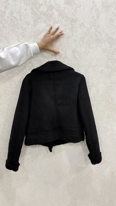 Qara qısa süni qoyun dərisi (shearling) effektli jaket