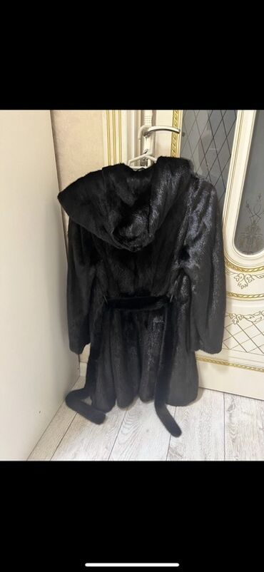 Qadınlar üçün qara xəz ( shuba) - Model: kapüşonlu, beldən kəmərli - Material: yumşaq qara xəz (daxili atlas/parça astar) - Dizayn: iri dekorativ broş düymə, gizli düymələmə - Uzunluq: dizəden (or...