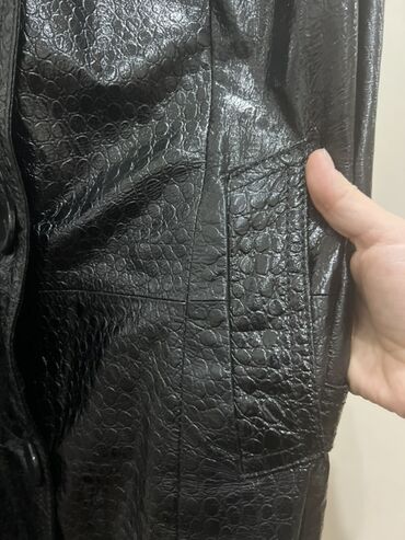 Yenidir etiketli super model👍🏻 Qara dəri trençkot - Material: toxumalı qara süni/real dəri görünüşlü parıldamayan səth (şəkildə teksturalı). - Uzunluq: baldırdan aşağıya qədər, maksi kəsim. - Diz...