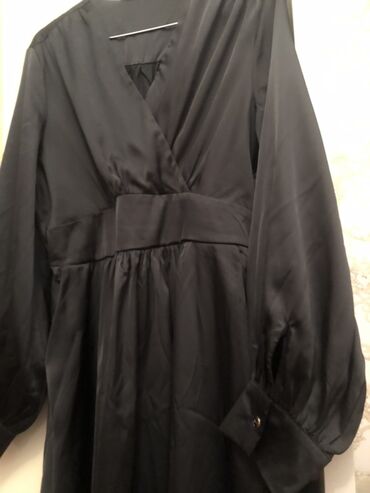 Qadın atlas donu404244razmer - Rəng: qara, parlaq atlas parça - Üst hissə: krujeva effektli bəzəkli dekolte, qatlanaqlı (drapirovka) dizayn - Qol: dirəyə qədər, üzərində daş-naxış bəzəkləri - Bel:...