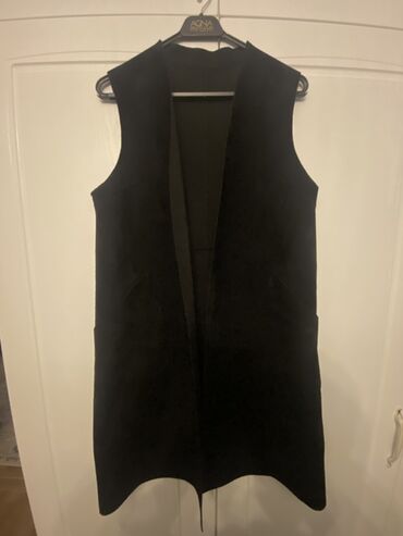 Qara süni kürk qadın jileti - Rəng: dərin qara - Material: yumşaq, sıx teksturalı süni kürk; iç tərəfi atlas tipli astarla - Dizayn: uzun model, üfüqi panellərlə tikili; V-yaxalı - Bel xətti: elas...