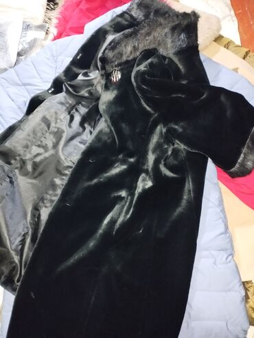 Qadınlar üçün uzun qara kürk paltar. - Model: klassik düz kəsim, dizdən aşağı uzunluq - Rəng: dərin qara - Material: yumşaq, sıx tüklü süni/faux kürk effekti ilə (toxuması hamar və parlaq görünüşl...