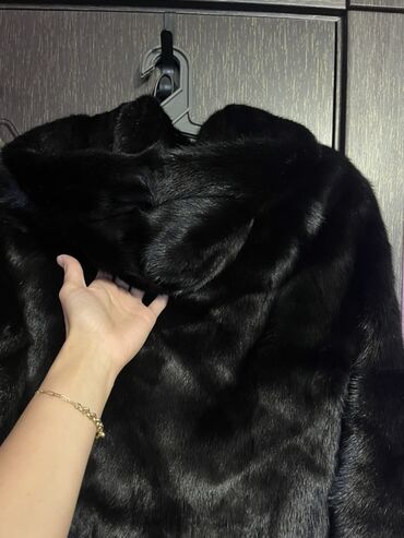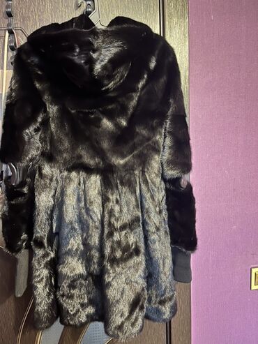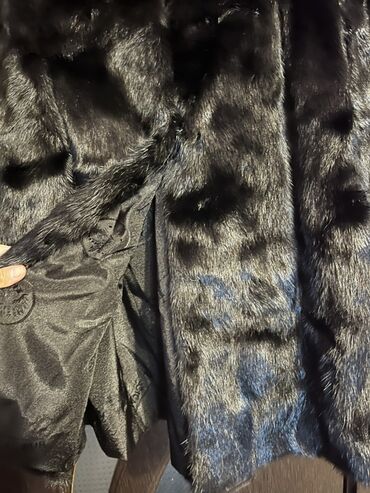 Qara rəngli xəz palto - Klassik siluetli, dizə yaxın uzunluq -