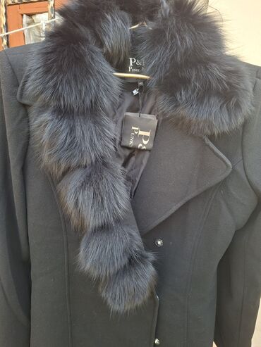 Qadın üçün qara klassik palto - Rəng: qara - Dizayn: klassik, dizə yaxın uzunluq - Yaxası: həcimli, tüklü/saçaqlı kürklü yaxa (çıxarıla bilən olub-olmadığı məlum deyil) - Bağlanma: ön hissədə 4 ir...