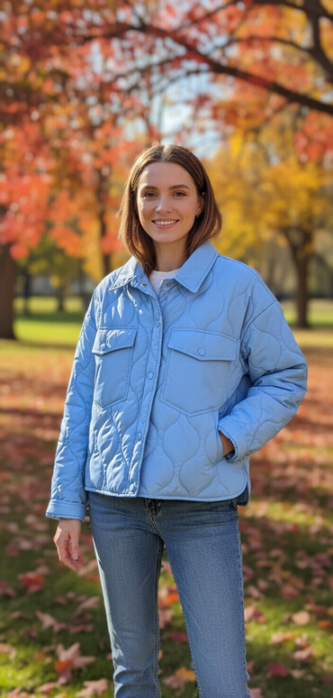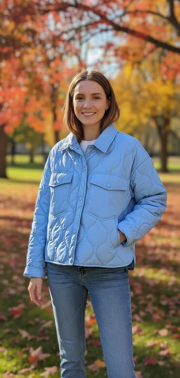 PuxovikAçıq mavi rəngdə qadın qatı tikməli qısa şişmə gödəkçə