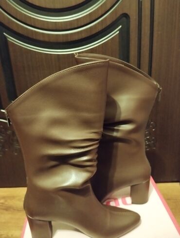 Qadın üçün uzun dəri çəkmə – qəhvəyi,39 və 40 razmeri mövcuddur,yenidir - Model: dizaltı uzunluqda, klassik siluet - Rəng: tünd qəhvəyi - Material: hamar fakturalı (dəri görünümlü) üstlük, iç hiss...