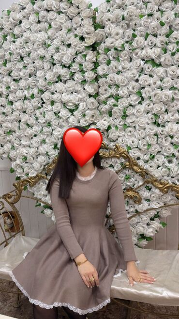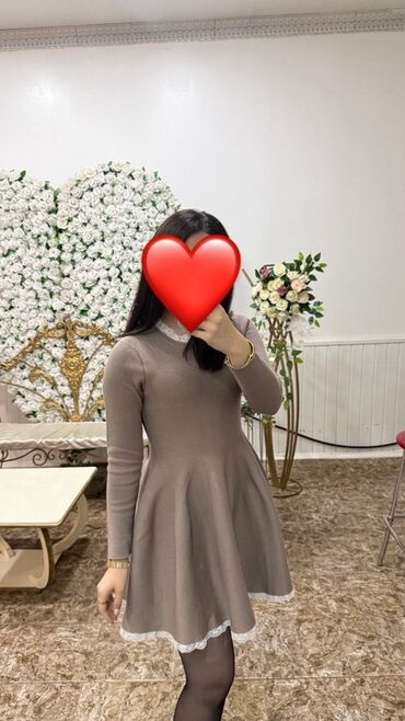 Qadın qısa əlbəttə paltar – süet effektli parça, dekorativ metal şarnir/mix bəzəklərlə - Dizayn: Düz kəsim mini paltar, sinədən aşağı “V” formasında və ön mərkəz boyunca xırda metal düyməcik/nişan...