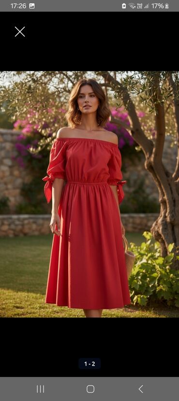 Ünvandan götürməQırmızı, açıq çiyin kəsimli midi don