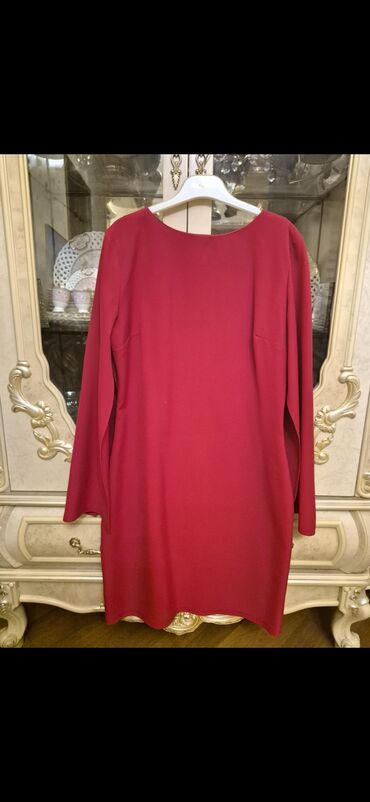 AMISU marka qadın donu - Rəng: parlaq qırmızı - Ölçü: EU 36 (US/CA 6) - Model: uzunqollu, V-yaxa - Kəsim: beldən büzgülü, çoxqat ətəkli, rahat A-kəsim - Material: etiketdə “Made in China” (parça y...
