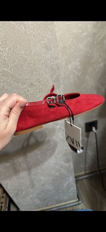 ZARA BASIC Collection qadın baletkaları - Rəng: qara - Model: sivri burunlu, bağlamalı (ayaq biləyi ətrafında nazik iplə bağlanır) - Material hissiyatı: zərif süet effektli üstlük - Daban: alçaq, ...