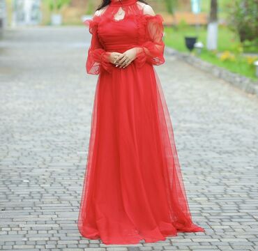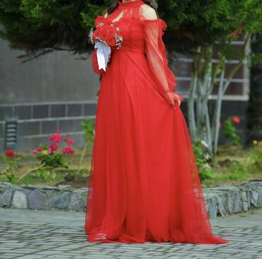 Məhsulların təsviri: 1) Bordo ziyafət donu - Bəzəkli və aplikasiyalı üst hissə, tül ətək - Şəffaf tül dekolte və uzun, həcmli tül qol - S-M razmer - Qiymət: 15 manat - “Bir dəfə geyinilib” qeydi ş...