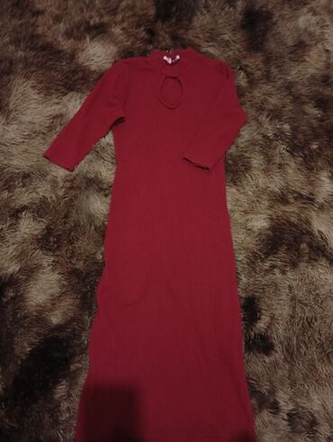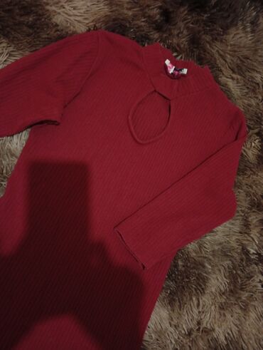 Qırmızı trikotaj uzun paltar - Model: Ginzaro asqılıqda olan, düyməli kardiqan-kleit stili - Rəng: Parlaq qırmızı - Material: Qalın, elastik trikotaj (toxunma fakturalı), isti və rahat - Dizayn: ...
