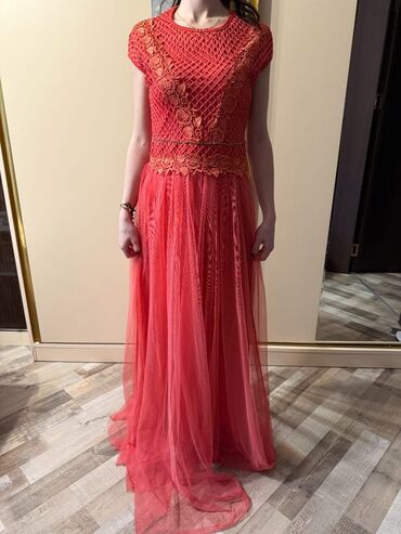 Qırmızı uzun ziyafət paltarı 36-38 bədən, 1dəfə geyinilib