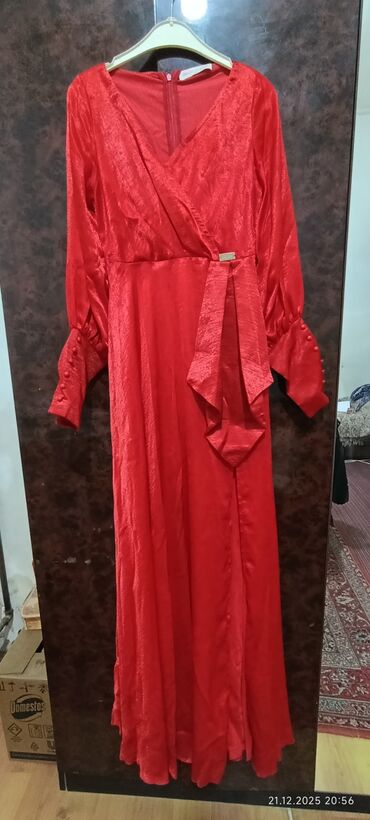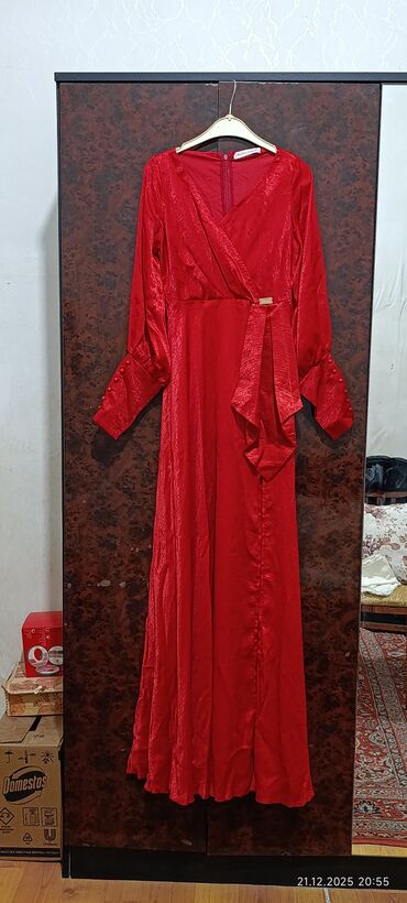 Qırmızı uzun don – zərif atlas-effektli parça