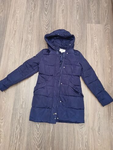 Qadın şişmə uzun kurtka – O’STIN, ölçü S - Rəng: tünd göy (navy) - Uzun model, dizə yaxın ölçü - Üfüqi kapitone tikili, bədənə yığma effektli arxa hissə - Hündür, isti yaxa - Ön tərəfdə ikitərəfli...