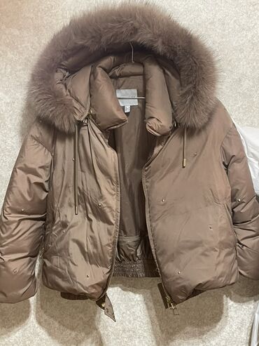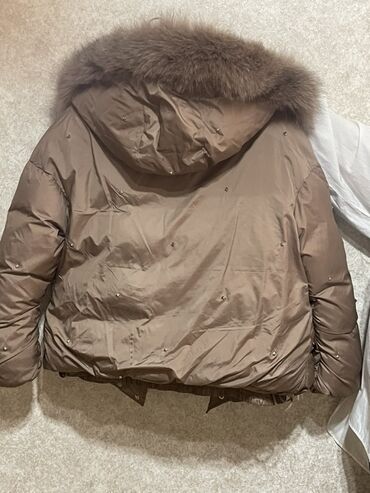 Qadın qış gödəkçəsi 42-44 - Rəng: açıq qəhvəyi/karamel tonları - Material: parıldayan suya davamlı toxuma, içi isti doldurmalı (quilted) - Kapüşon: iri, tünd qəhvəyi süni kürk haşiyəli - Bağlanma: ...