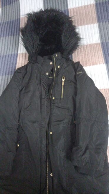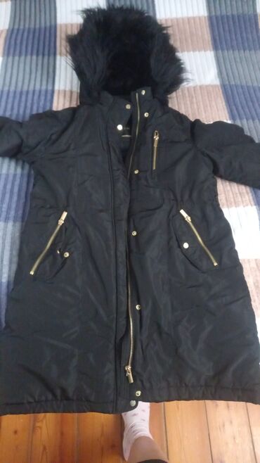Qara qadın qış paltosu 80 man. - Uzun, yastı tikişli, isti şişmə (puf) model - Qalın, çıxarıla bilən kapüşon; kapüşonun kənarında süni kürk bəzəyi (qara-boz tonlarda) - Ön hissə: ikili bağlama – ə...
