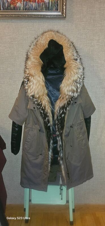 Cins parka – içi tüklü astarlı, kapüşonlu Az geyınlıb yenı kimdi 120 alınıb 50 veirirem awaqı hıssesınde zamuqun keçen baglan yerınde rezın yoxuydu men alanan eleydı ama bağlanır zamoku L razme...