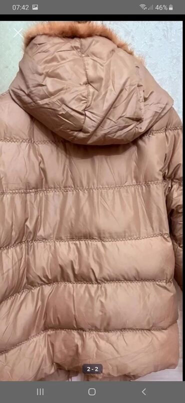 Qadın qış gödəkçəsi 42-44 - Rəng: açıq qəhvəyi/karamel tonları - Material: parıldayan suya davamlı toxuma, içi isti doldurmalı (quilted) - Kapüşon: iri, tünd qəhvəyi süni kürk haşiyəli - Bağlanma: ...