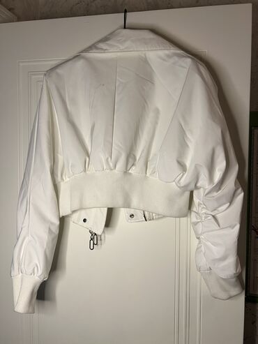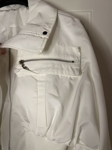 Suns qadın kurtkası – dizayn Muccifora + Blondi - Rəng: krem/ivori - Ölçü: S (etiketdə) - Model: qısa, puflu/quilted - Bağlanma: ön hissədə kontrast qara rəngli fermuar - Yaxa: iri çevrilən yaxa - ...