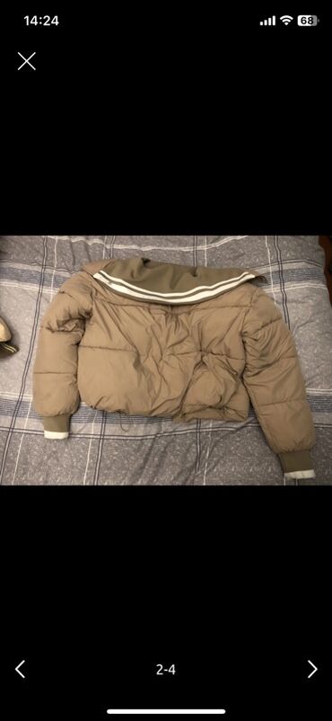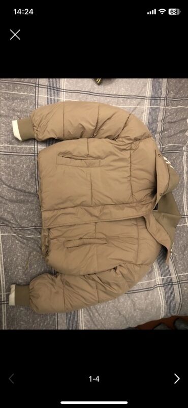 Qısa şişmə qış gödəkçəsi - Rəng: açıq-boz/bej ton - Model: qısa, oversize kəsim - Bağlanma: gizli fermuar və əlavə düyməli planka - Kapüşon: qalın parça, tənzimlənən iplərlə - İsti dolğu: horizont...