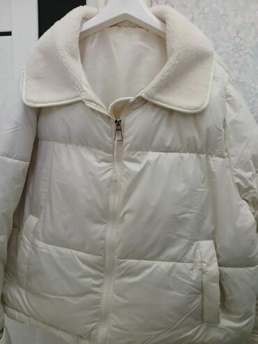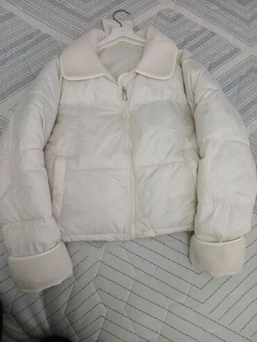 Ağ rəngli qadın qış gödəkçəsi - Model: qısa, şişmə (puffer) tipli -