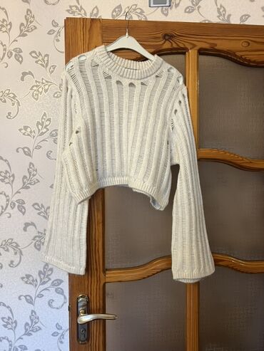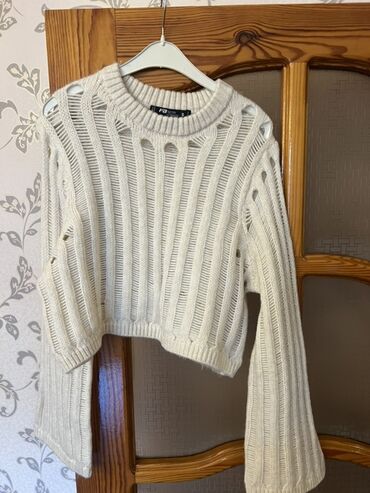 Ağ rəngli trikotaj qadın sviteri.