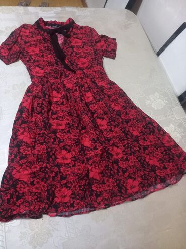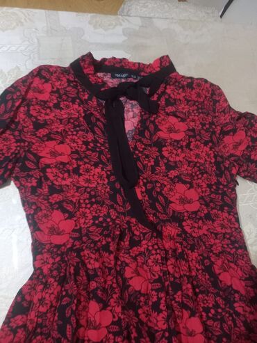 Qadın paltarı – REYON (Made in Turkey) - Rəng və naxış: Qara fon üzərində ağ çiçək printi - Ölçü: EUR M / USA 28 / MEX 28 (etiketdə göstərilib) - Dizayn: Kvadrat yaxalı, qısa şarmlı qol, ön hissəd...