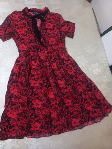 42razmer Qadın paltarı – midi uzunluq, çiçək naxışlı - Rəng: qara fon