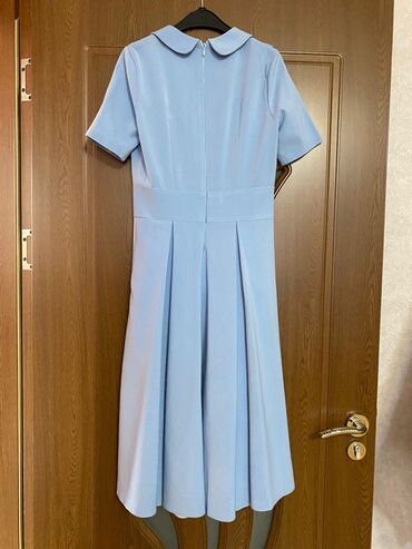 Açıq mavi rəngdə zərif qadın donu. - Düz kəsim, midi uzunluq. - Qısa