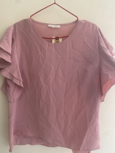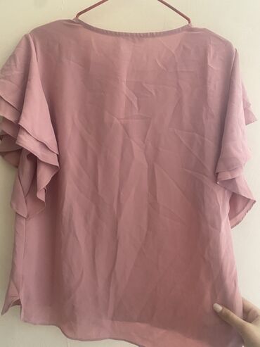 Zərif toxuma detallı qadın bluzası - Rəng: pudra/solğun çəhrayı - Model: düz kəsim, rahat siluet - Qol: 3/4 uzunluqda, krujeva naxışlı - Yaxa: dairəvi - Material: nazik, yumşaq toxuma; yuxarı hiss...