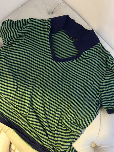 Yazlıq/şıq qadın köynəyi L razmer - Rəng: tünd yaşıl fon üzərində krem-ağ abstrakt naxış - Model: oversize/relaks kəsim, önü düyməlidir - Yaxa: klassik köynək yaxası - Qol: yarasa (batwing) tipli g...