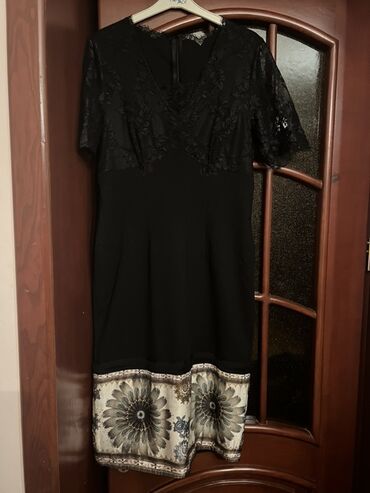 Rinascimento qadın paltarı - Rəng: qara - Dizayn: ön hissəsi nazik ağ xətli (pinstraip) parça ilə, arxa hissəsi tam qara - Yaxa: yuvarlaq - Qol: qısa - Uzunluq: midi - Kəsim: bədənə oturan siluet,...