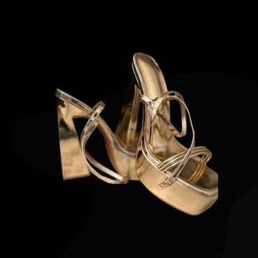 Qızılı rəngdə qadın platforma sandaletləri. 39 ölçü