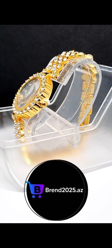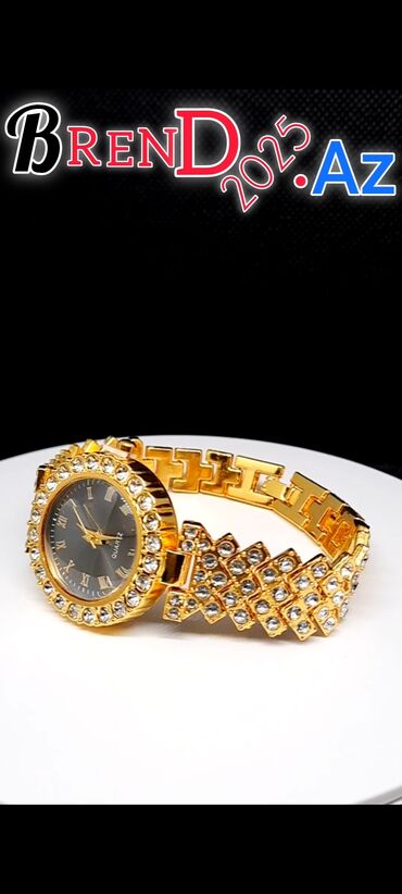 Zərif dizaynı və parlaq daşları ilə qolunuzda zinət kimi görünən şıq saat. Brend2025.az loqolu vitrin görüntülərində təqdim olunub.