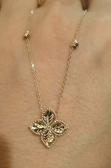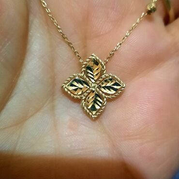 Ünvandan götürməQızıl rəngli zəncir və yonulmuş dörd yarpaq motivli kulon