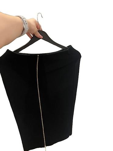 Qadın ətəyi – Birdem Etek, ölçü 44 - Rəng: qara - Model: düz/kliyosh olmayan qələm silueti - Uzunluq: dizə yaxın - Parça: sıx toxumalı, formaya saxlayan material; içi astarlıdır - Bel: nazik kəmər...