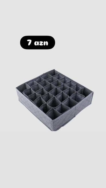 Endirimsiz- 24 bölməli parça təşkilatçı qutu – corab, alt paltarı, aksesuar və xırdalar üçün idealdır. Rəng: boz. Qiymət: 7 AZN.
