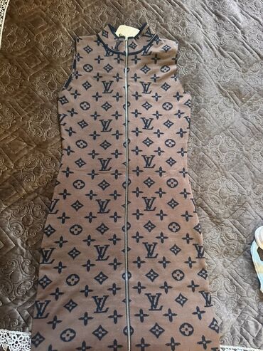 Qeyd: Şəkillərdəki kimi naxışlı, fermuarlı qəhvəyi trikotaj paltardır.