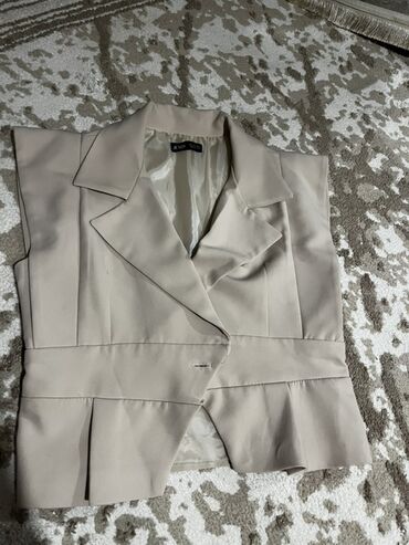 Bej rəngli qolsuz jilet-köynək