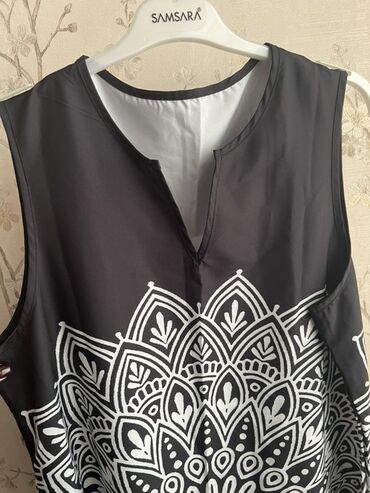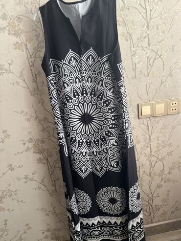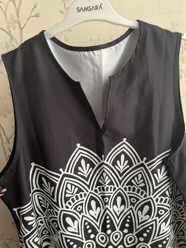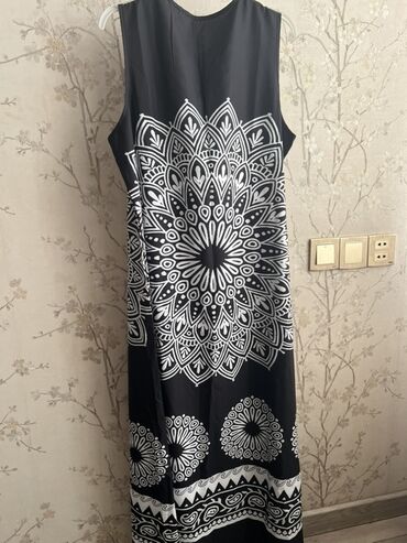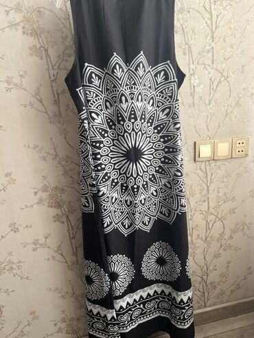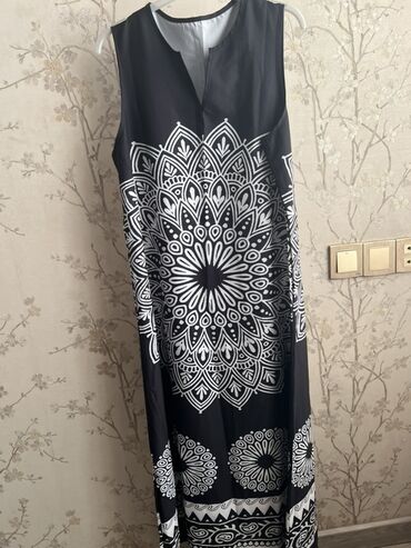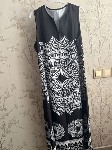 Qolsuz maxi don – qara rəng üzərində ağ mandala və etnik naxışlar