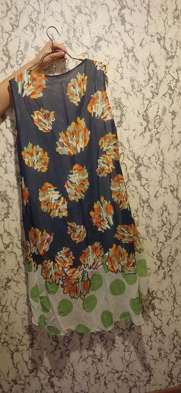 My Twins qadın geyimi – şifon paltar - Brend: My Twins - Ölçü: EUR 46 (RUS 52) - Rəng/naxış: tünd yaşıl fonda böyük tropik yarpaq printi (qəhvəyi-bej tonlarda) - Material: yüngül, axıcı şifon; iç ...