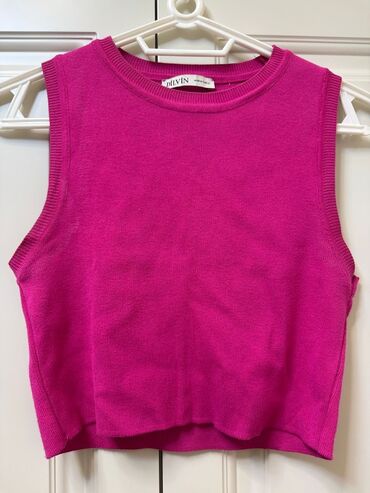 Qadınlar üçün qolsuz ribli top - Model: kvadrat dekolteli, qısa kəsimli (crop) top - Rəng: bej/şaftalı tonları - Parça: elastik, incə şaquli rib toxuma; bədənə oturan - Dizayn detalları: qalın ask...