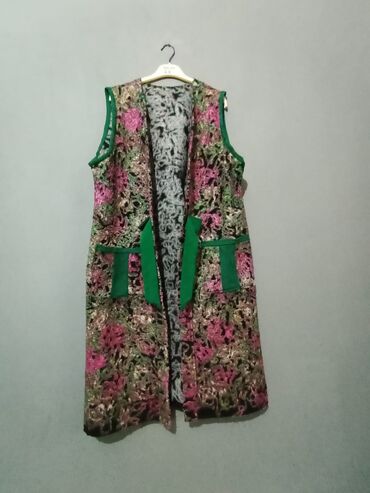 Gündəlik və ya milli üslubda kombinlər üçün uyğun, qışda isti saxlayan şuba və üzərində rəngarəng naxışlı jilet. Ölçülər şəkillərdəki kimi uzun formadadır.