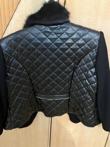 MESUTTI qadın gödəkçə, ölçü: XL - Model: qara dəri görünüşlü qadin gödəkçə, brend etiketli (MESUTTI, XL) - Yaxa: iri, qalın, təbii tüklü effektli şərf/yaxalıq (boz-qonur tonlarda), ön hissədə uzan...