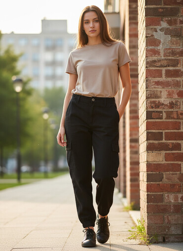 DF Young markalı qara rəngdə, yan cibləri olan şalvar. Gündəlik istifadə üçün rahat və praktik seçimdir.