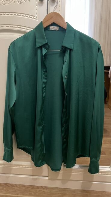 Başlıq: Trend yoldan alınıb tezedi boyuk oldugu üçün satilir. 20mnt Təsvir: - Marka: Trendyol - Rəng: Zümrüd yaşılı - Model: Qısaqoll qadın bluz/kofta - Yaxa: Bəzəkli, naxışlı aplikasiyalı yuvarla...