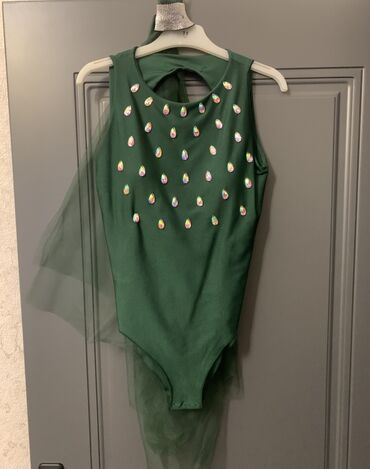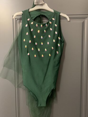 - Stil və istifadə: rəqs, gimnastika, səhnə çıxışları, bayram tədbirləri üçün uyğundur; parlaq daşlar və tül qatlar işıq altında effektli görünüş yaradır